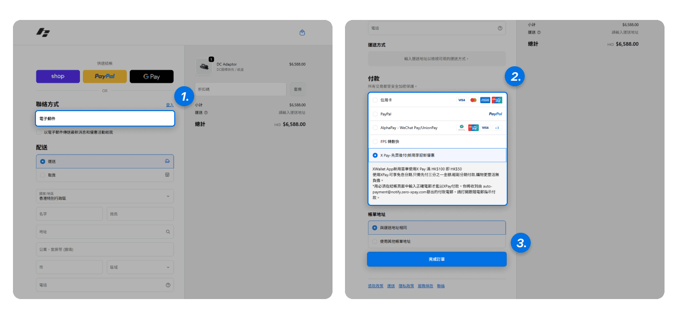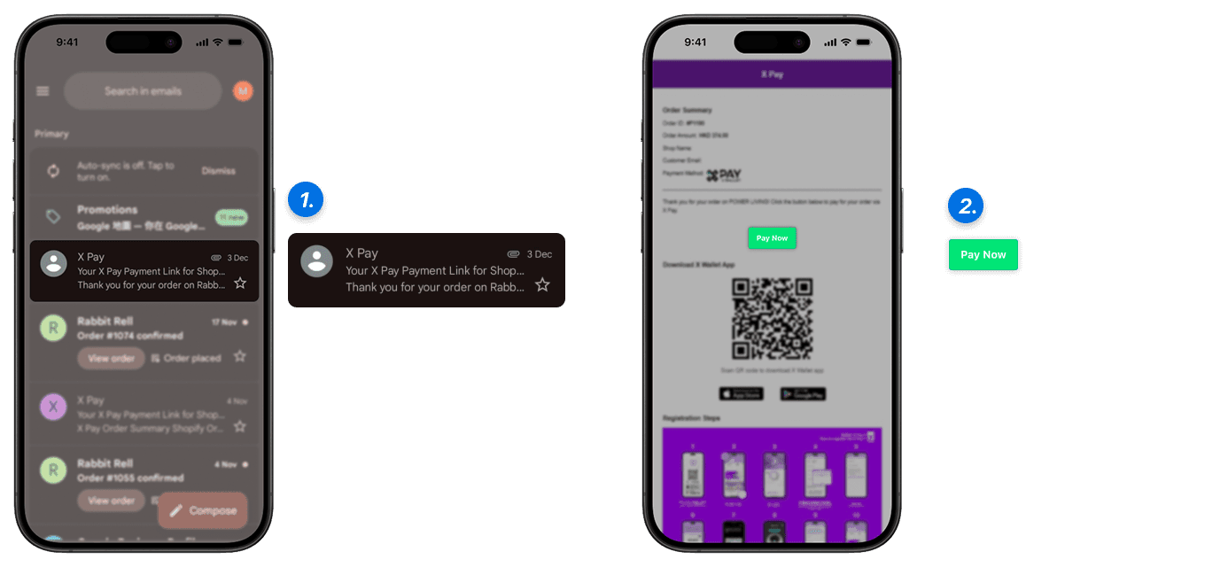 會收到兩封郵件,一封是Shopify訂單確認電郵,另一封是X Pay付款電郵(auto-payment@notify.zero-xpay.com),打開X Pay付款電郵